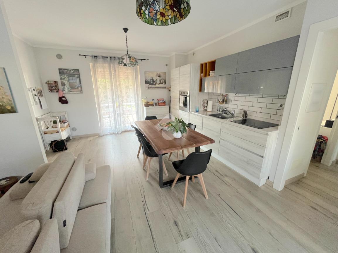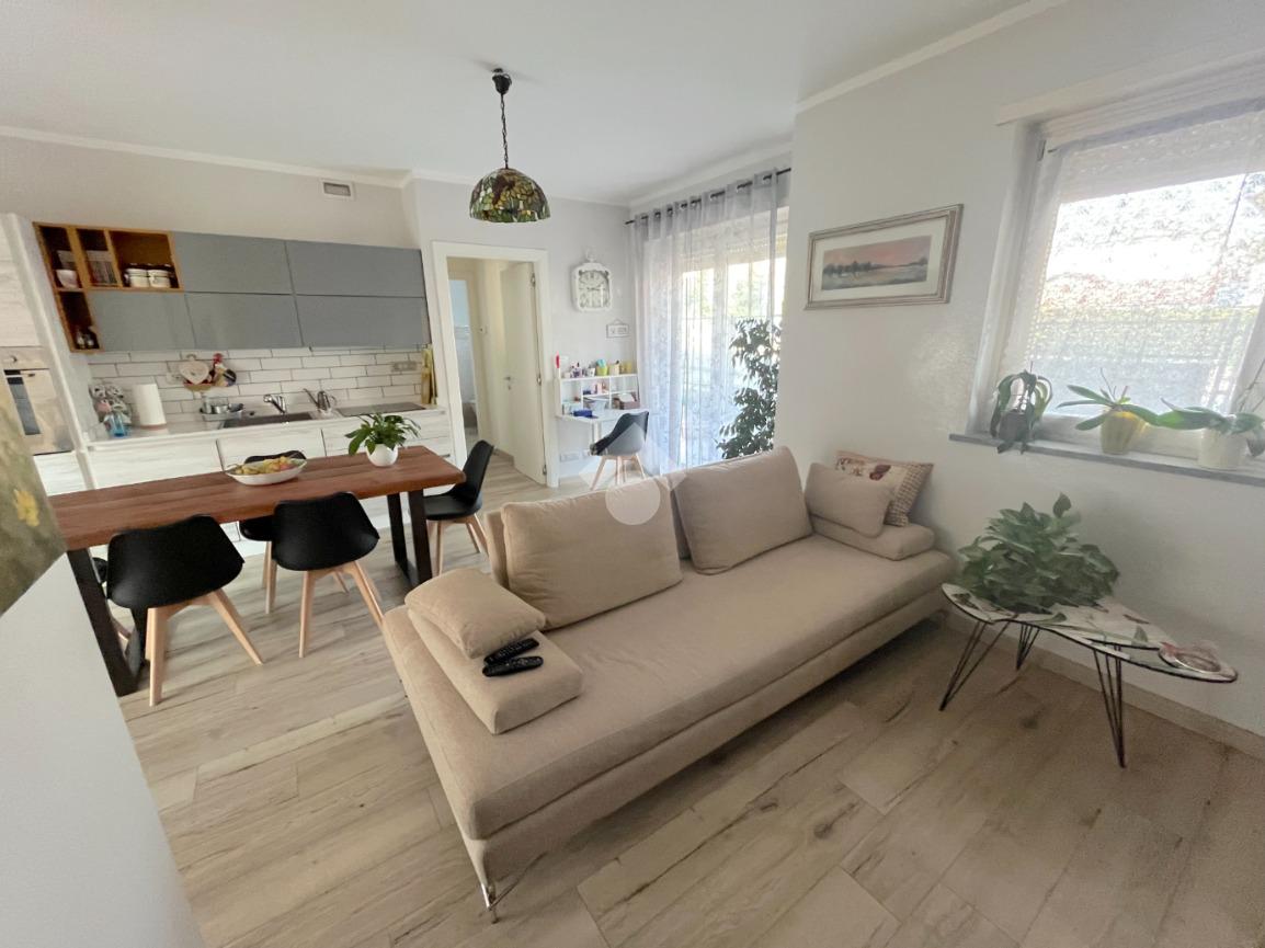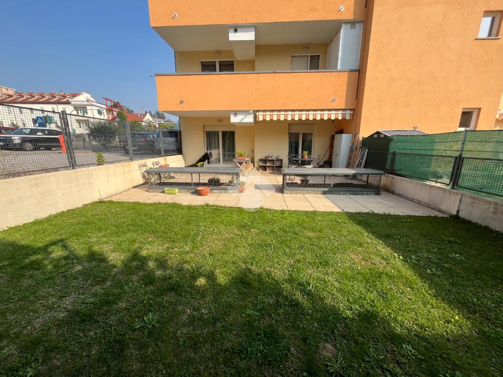 L’appartamento si distingue per la disposizione funzionale degli ambienti e per la luminosità naturale che caratterizza ogni spazio. L’ingresso si apre su un’ampia zona giorno, elegante e accogliente, dove soggiorno e cucina convivono armoniosamente in un ambiente unico e ben distribuito. Da qui si accede direttamente all’esterno, dove si trova un giardino privato che abbraccia l’intero perimetro dell’abitazione.