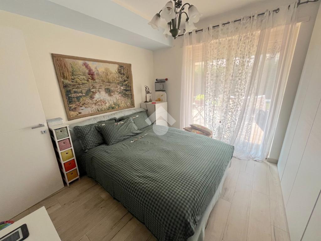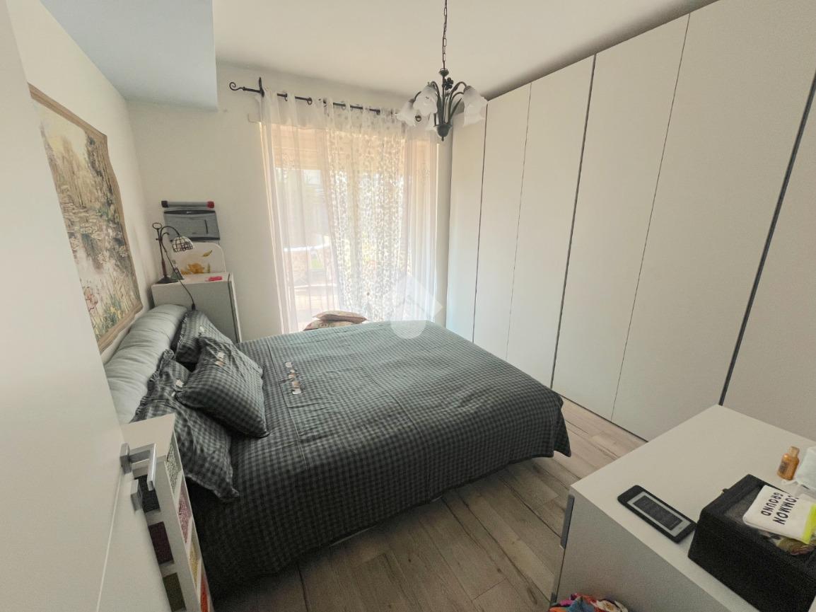 La zona notte ospita una camera da letto matrimoniale, silenziosa e confortevole, e un bagno finestrato con doccia, rifinito con materiali moderni e pratici.