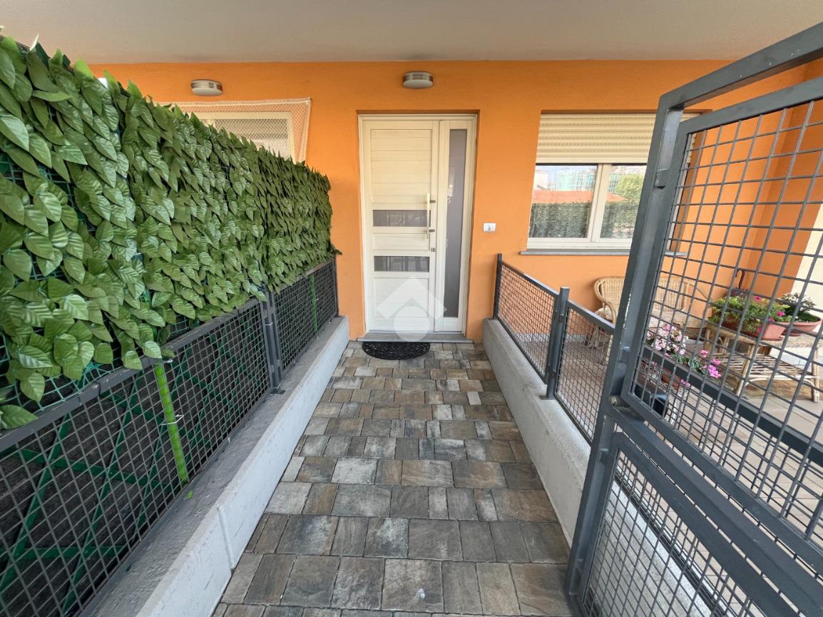 Il giardino è uno dei punti di forza di questa proprietà: una parte è pavimentata – ideale per pranzi all’aperto, momenti di relax o per mantenere l’ingresso sempre pulito – mentre un’altra parte è a prato, perfetta per chi desidera uno spazio verde da personalizzare con piante, fiori o una piccola area giochi. Uno spazio versatile, che offre la possibilità di vivere all’aperto in ogni stagione.