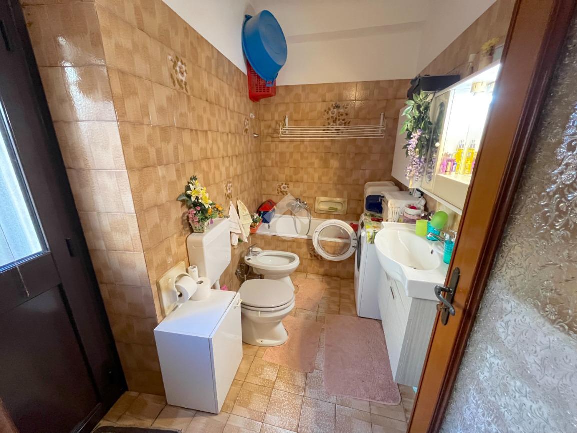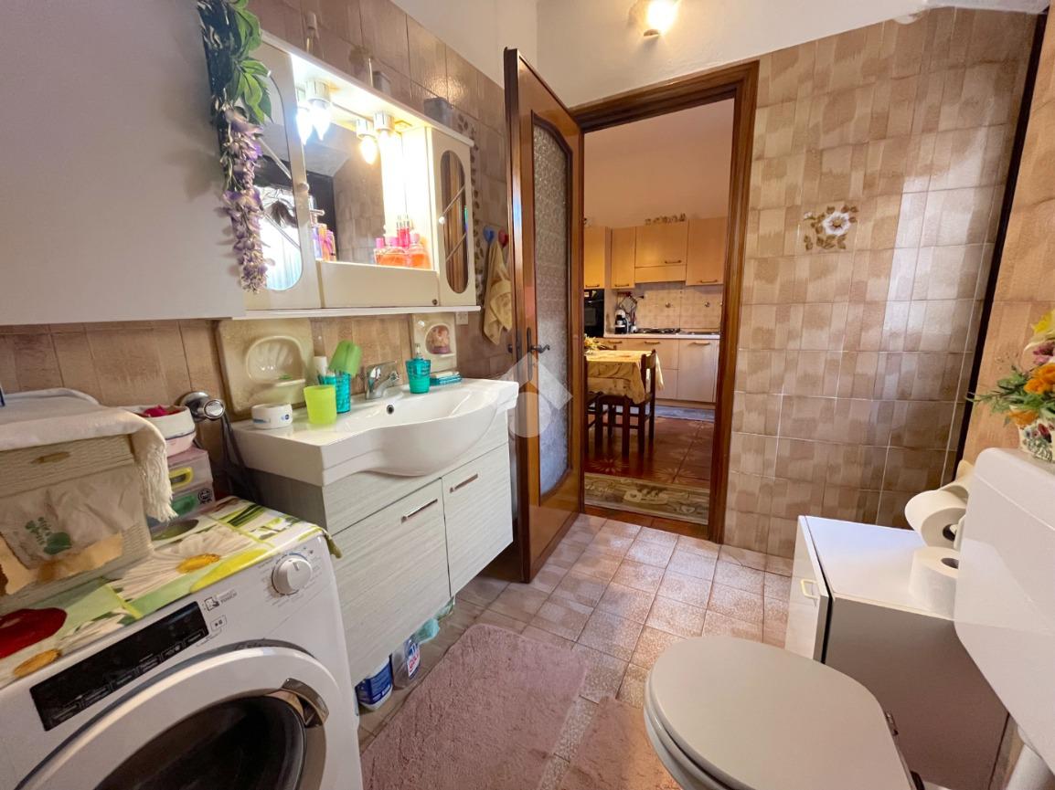 Il bagno, dotato di sfogo esterno sul balcone, è pratico e ben organizzato.